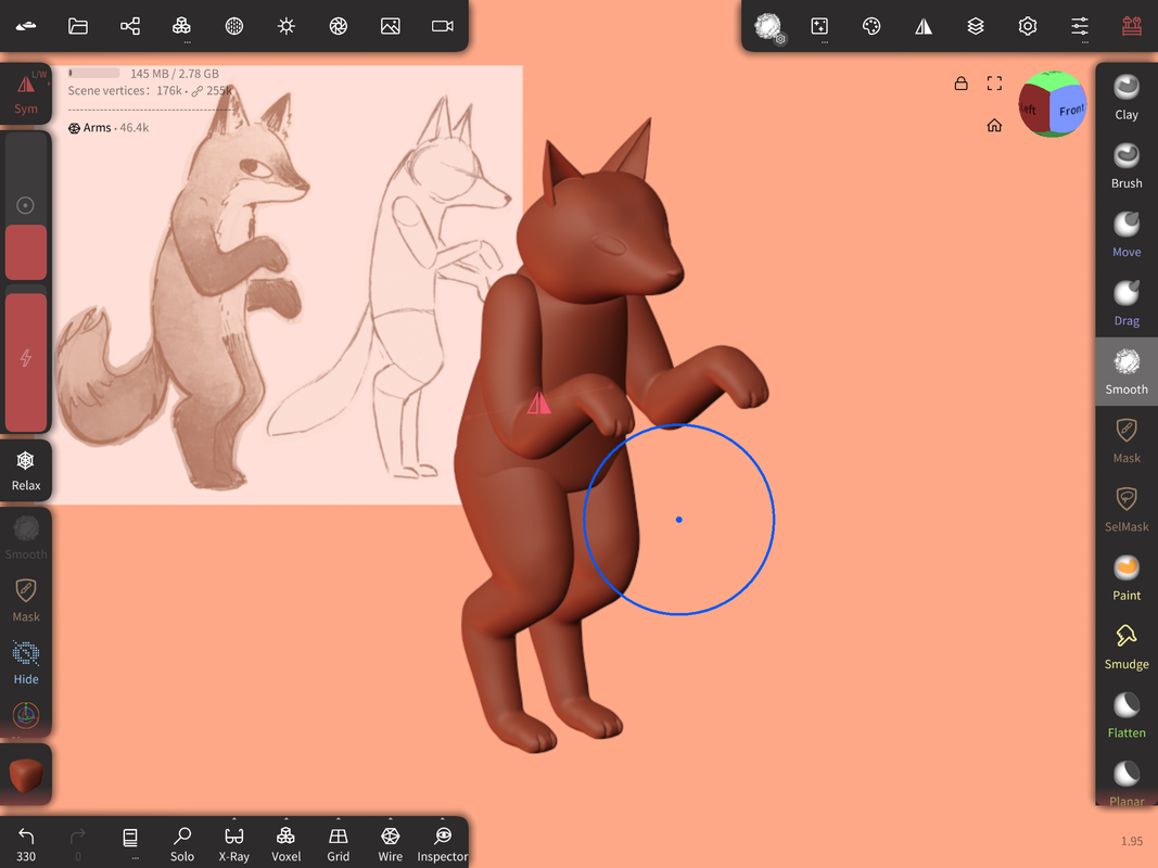 It was pointed out to me that the foxes legs are a bit to angular and I realized that I was thinking to much about how the bones look inside the legs instead of how the legs look with the skin and fur on top