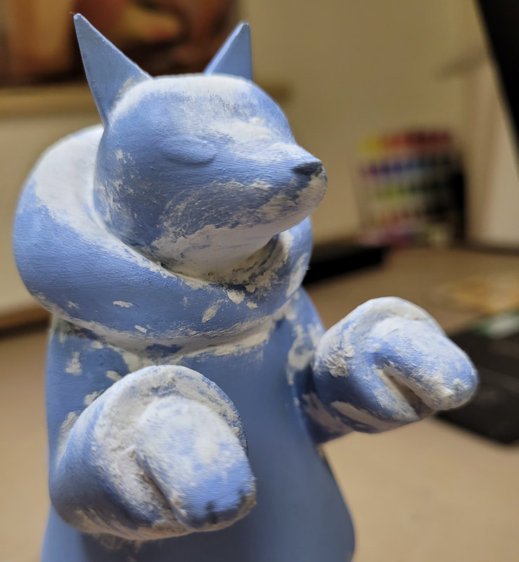 Next you would usually use a type of primer to fill in between the lines before sanding again, put I don't have a primer so I'm using acrylic paint and air dry clay instead