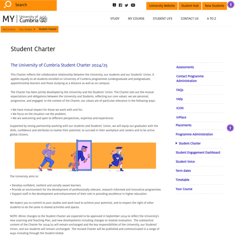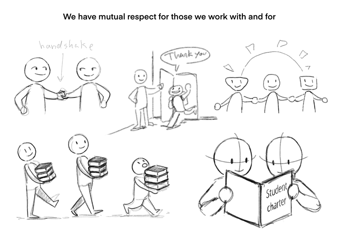 Student charter values: • We have mutual respect for those we work with and for; • We focus on the situation not the problem; • We are welcoming and open to different perspectives, expertise and experiences