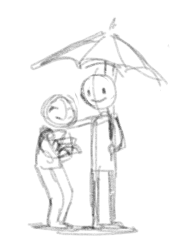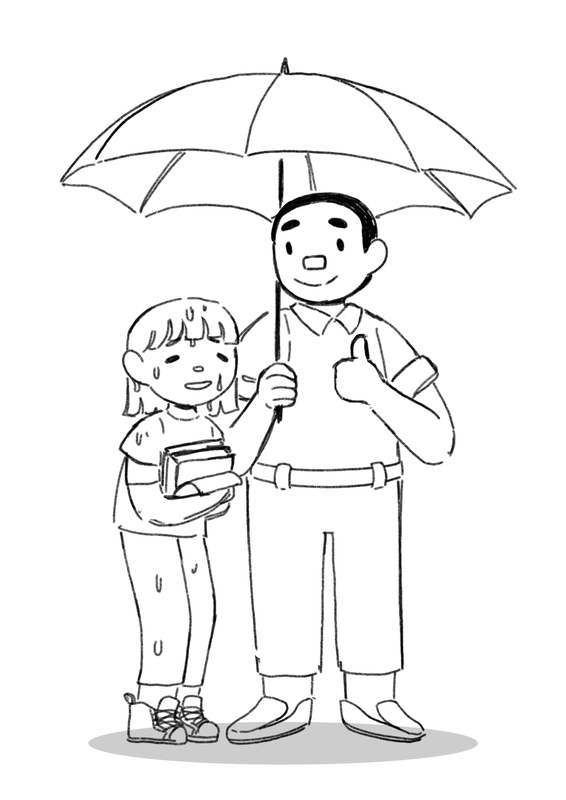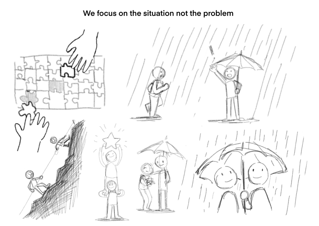 The problem is the rain, but we focus on the situation, which is the person getting wet in the rain